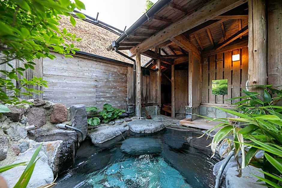 The private open-air bath is a top feature of this family room. The family room features air conditioning, tatami, as well as a private bathroom boasting a bath and a shower. The unit has 4 futons.