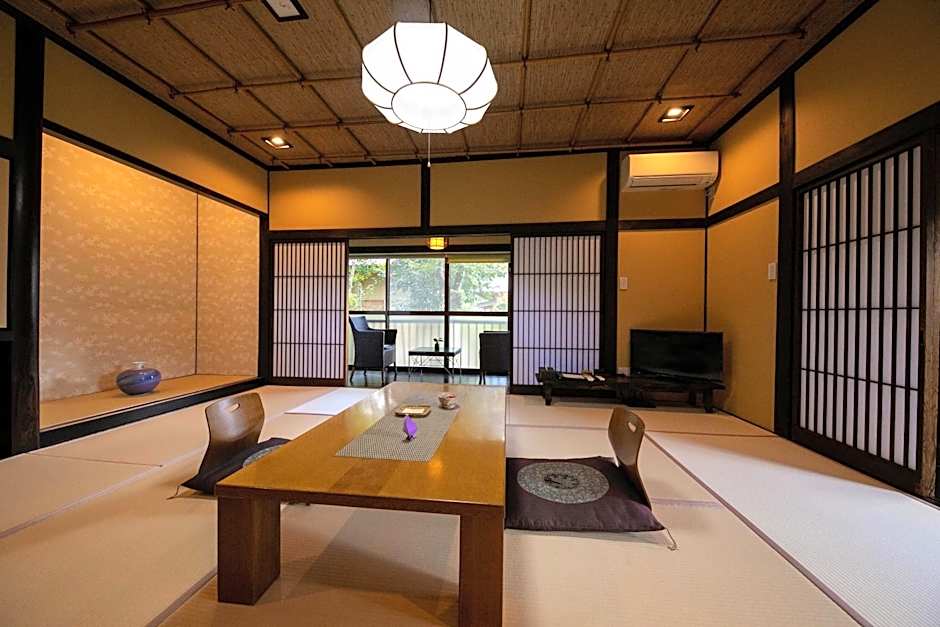 This family room's special feature is the private open-air bath. The family room provides air conditioning, tatami, as well as a private bathroom featuring a shower and a bidet. The unit offers 4 futons.